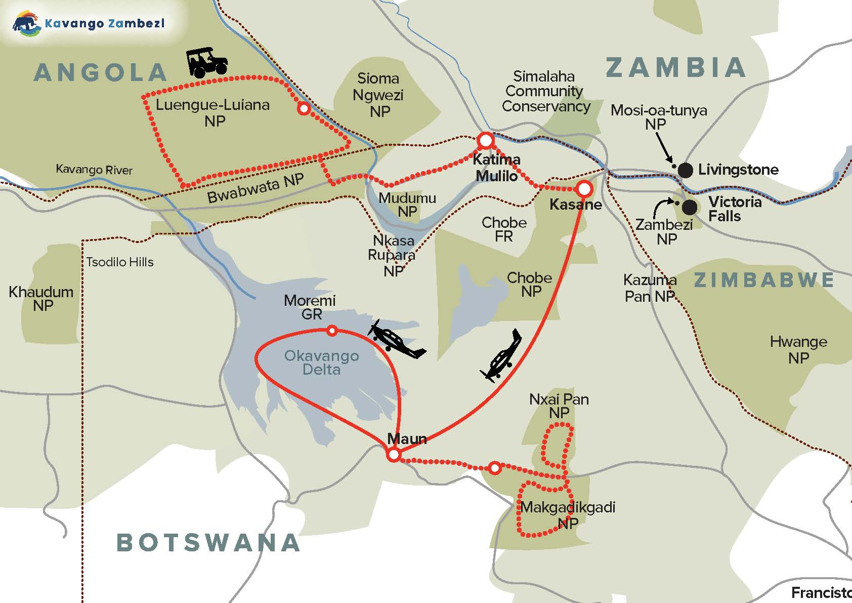 - Delta icons: Pel’s Fishing Owl, Slaty Egret, White-backed Night Heron, African Fish Eagle