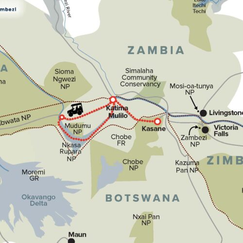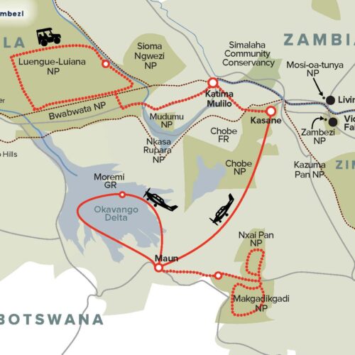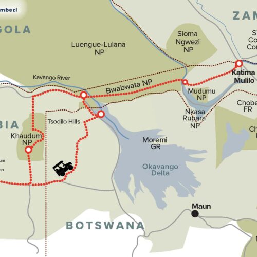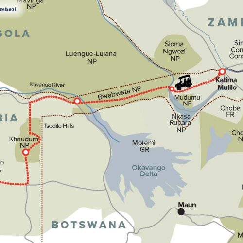 More about this region- Namibia Wetlands Route (Kwando River, Mudumu National Park, Nkasa Rupara National Park, Katima Mulilo, Zambezi River and associated floodplains, Ngoma bridge area along the Chobe River, Chobe River front/floodplain, and Impalila Island area)