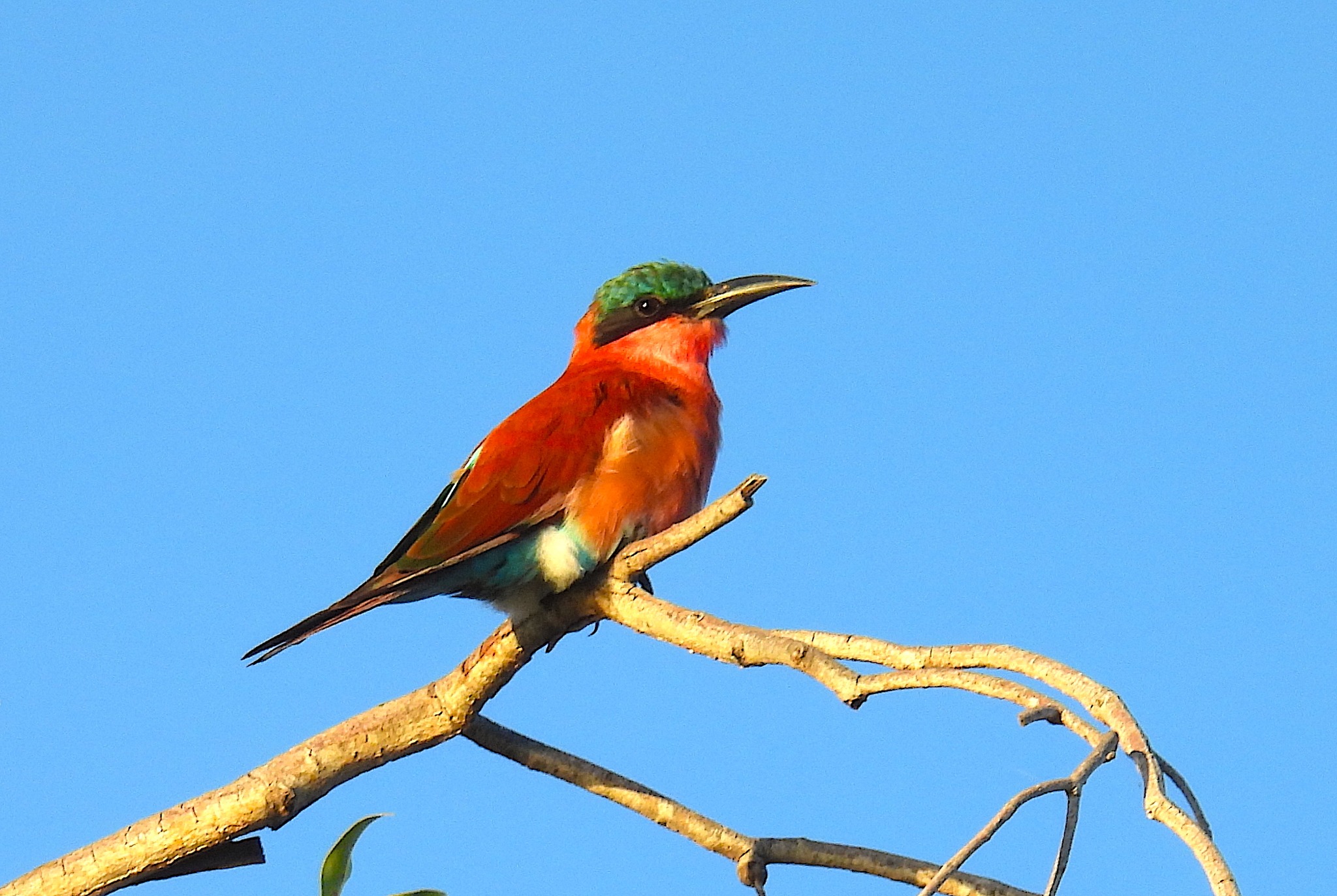 The character of the river at any point determines which birds find a home there. Where it speeds up, such as at Poppa Falls, Rock Pratincoles perch on outcrops above the current. Where it slows down, crescent sandbars offer nest sites for African Skimmers and Southern Carmine Bee-eaters excavate colonies in its steeply-shelving banks. In quieter stretches, tall riparian trees offer roosts for the elusive Pel’s Fishing-owland White-backed Night-heron.