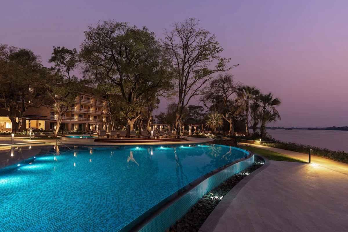 Radisson Blu Mosi‑Ao‑Tunya, Livingstone Resort is located within Mosi‑oa‑Tunya National Park on the banks of the Zambezi River. Guests are close to Victoria Falls and the wildlife-rich UNESCO World Heritage surroundings. Rooms provide air conditioning, coffee and tea facilities, a TV with mirror casting, and bathroom amenities. The resort features multiple on‑site dining experiences, including restaurants and bars offering varied cuisine. Facilities include a stunning outdoor pool, event venues, and tranquil natural spaces ideal for relaxation while exploring Livingstone’s remarkable landscape.